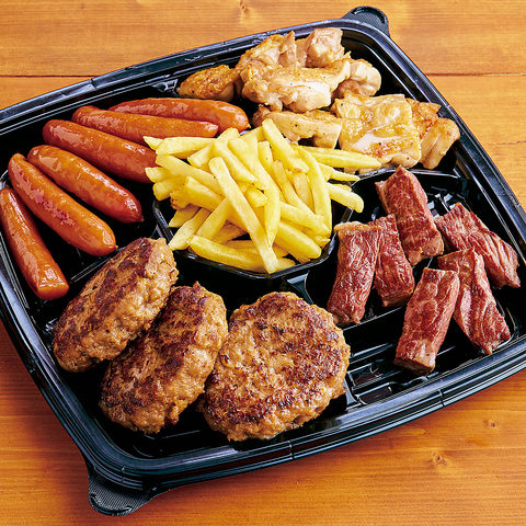 チャックテールフラップステーキ チキングリル ソーセージグリル 宮ハンバーグ フライドポテト