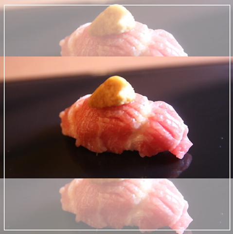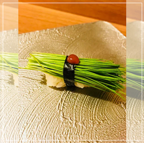 もっと堪能したい方におすすめ。煮アナゴ・ウニ・芽ネギ(写真は一例)など、その日の新鮮なお寿司。味はもちろん目でも楽しんで頂けるよう、一つ一つ細部にまでこだわってご提供。これが寿司処かい原流おもてなし。