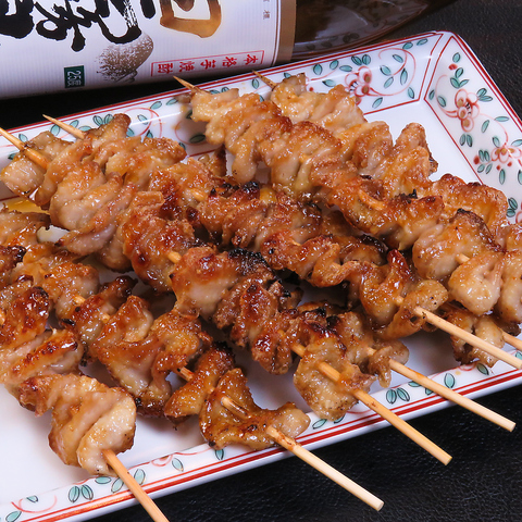 ふわふわの食感と鶏のうまみ溢れる『手作りつくね』は、お子様からご年配のお客様まで皆様に愛される串焼きです!種類も月見つくね、チーズ、明太、おろしポン酢、黒胡椒一味と豊富にご用意しております◎