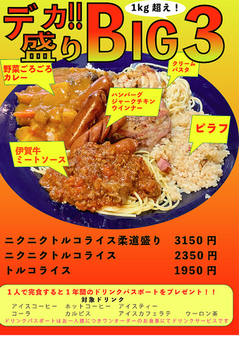 学生さんにもうれしいとってもリーズナブルなコースをご用意!各種宴会やパーティー、打ち上げ、おなかいっぱい食べたい時に、大満足なコースです☆さらにゆっくりできる、3時間飲み放題(3500円(税別))はなんと、パスタ、ピザ、カレーが食べ放題に!ぜひ挑戦してみて