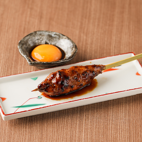 炭火焼串の中でも特におすすめ!鴨肉を100%使用し、粗挽きの鴨ミンチから手仕込みしたつくねは食べごたえ満点。ジューシーさを活かすために注文後、生の状態から一本一本焼き上げます。