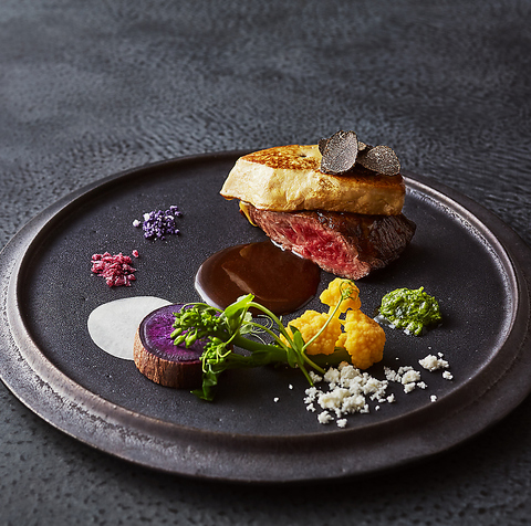 ・フォワグラのムース ・厳選マグロとアボカドのセルクル・ズワイガニのトルテリーニと甲殻類のジュ ・真鯛のポワレ白いんげん豆とシャドークイーンのガルビュール ・国産牛サーロインのロースト芳醇な赤ワインのソースと共に ・紅玉のアップルパイのショー・フロワ※写真はイメージです