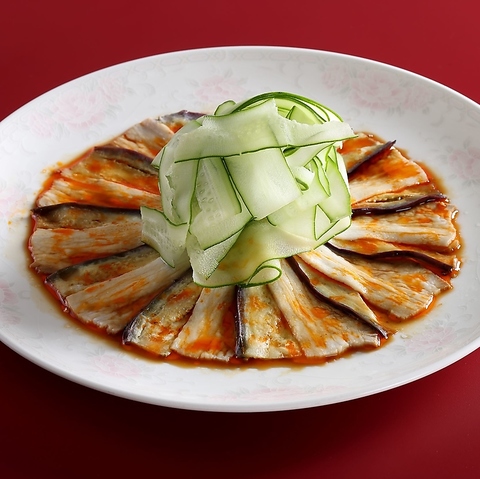 とろける茄子と豚肉の旨みに濃厚なニンニクが香る甘辛ごまソースをかけていただく逸品です