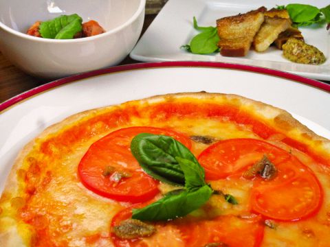 本場イタリア的薪火の石釜焼がある。大きな石釜で焼いたピアッツァは格別。薄めの生地でパリパリ。