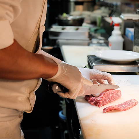 一流のブランド牛を一頭買いできるのは、厳しい職人の目と包丁の技があってのこと。厳しい条件を満たし認定された飼育者によって丁寧に育てられた牛肉なので安心・安全。とろける肉質と適度な脂身が絶妙のバランスです。