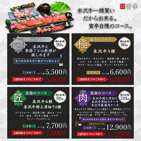 1週間前までのご予約がお得◎消費税相当額サービス◎米沢牛が食べれる飲み放題付コース