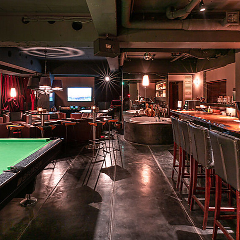 【団体様は最大50名様まで収容可能】各種パーティーに最適。大型モニター、バーカウンター、ダーツ、ビリヤード、カラオケ、ジャグジーを完備。