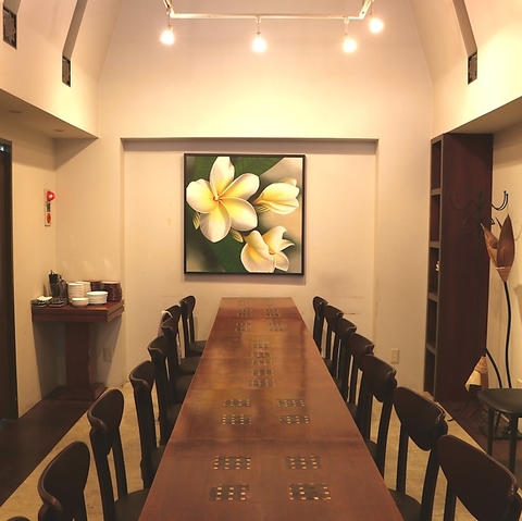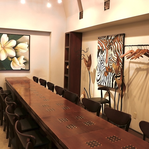 中2Fにご用意したテーブル席は完全個室で最大22名様迄ご利用OK!動物を模したインテリアがお出迎えするお部屋は、天井が高く開放的な空間。オリエンタルな雰囲気のテーブルは、一列に繋げたり二列にしたりとご宴会によってレイアウトが自由に変更可能です!女子会や町内の婦人会など、ゆったりとお食事をご満喫ください。