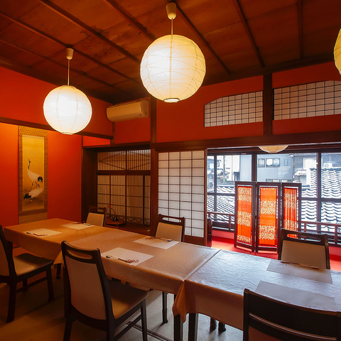 中庭を望める個室に加え、一階テーブル席なので足の不自由なお客様でも安心してお食事をして頂けるところ。ランプの個室はこのお部屋が元祖でランプ越しの中庭撮影は写真を撮るベストポイント!少人数のご予約でもご要望あればお通し可。※ご予約の状況により受けられないこともあり