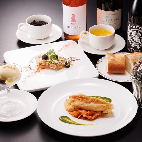 旬の食材を取り入れた本格コース料理。前菜からデザートまで、シェフこだわりの味をご堪能ください。