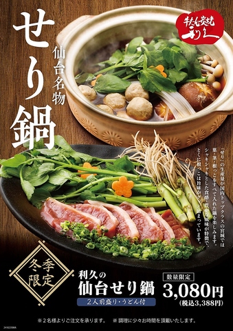 旬の食材を使った料理や地元仙台の素材を活かした利久こだわりの一品料理もご用意しております!お酒との相性抜群なメニューも多数取り揃え◎季節ごとの特別メニューもお楽しみいただけます!是非お気軽にお越し下さいませ!