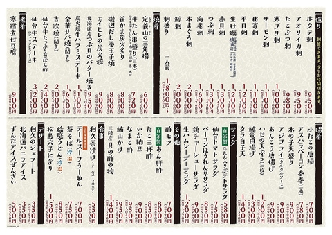 地元仙台の素材を利用した一品料理や、季節の創作料理など、仙台の味・伝統の味をお楽しみいただけます