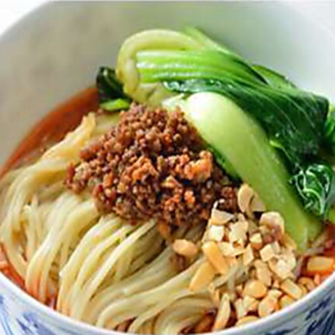 風味豊かなタレと香ばしい担担麺が絶妙に絡む一品です。もちもちとした食感の麺は、ピリッとした辛さと深い旨味が感じられる特製ソースに包まれ、トッピングの香菜やナッツがアクセントとなります。食感のバランスも楽しめるこの担担麺は、辛さと香りが広がり、本場四川の味わいを存分に感じられる一皿です。