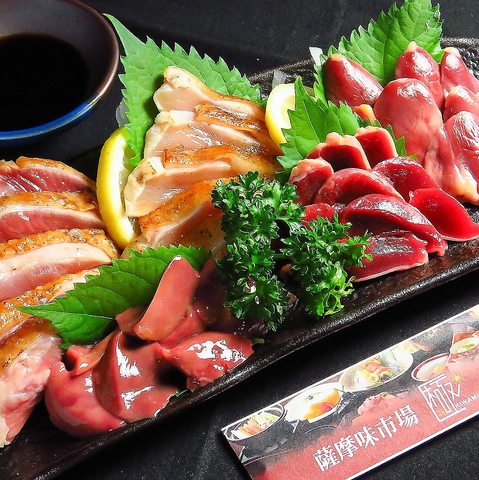 【鮮度抜群!】旨味たっぷりで引き締まった肉質の"薩摩地鶏"を贅沢にお刺身で…【薩摩地鶏5種盛り】1870円