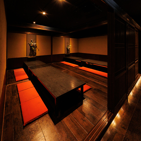 掘りごたつタイプのお席は足をおろしてゆったりおくつろぎ頂けます♪様々な個室をご用意しておりますので、人数に合わせたお席にご案内いたします!会社飲み会や2次会、お友達同士、ご家族でのご利用にもおすすめ◎古民家風の造りはまどろみの時間を演出。自慢の創作料理で最高の時間をお過ごしください♪