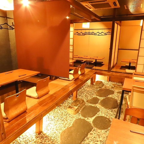 すだれが仕切りとなった個室のお席では、女子会や団体様のご宴会に最適です。足腰に負担のかかりにくい掘りごたつで、ゆったりとくつろぎながら美味しいお料理を堪能することができます。ついつい長居してしまう居心地拔群の店内。接待やおもてなしに。貸切25名様~ご利用も可能。最大35名様迄。お部屋のご相談承ります