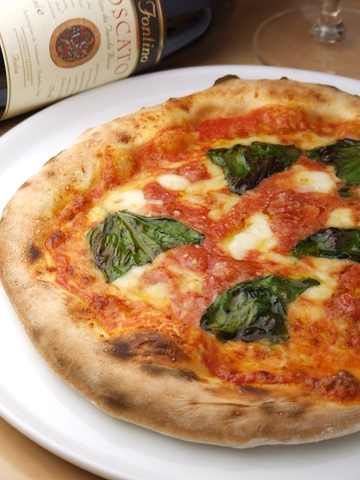 天然酵母と自家栽培のフレッシュ野菜を使用した人気ピザ。1枚1枚石窯で焼き上げます。テイクアウトも可。