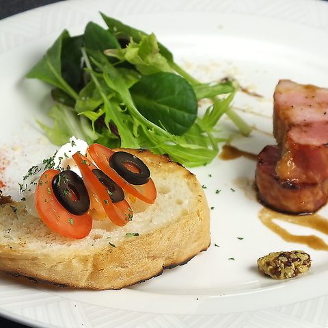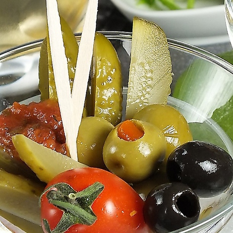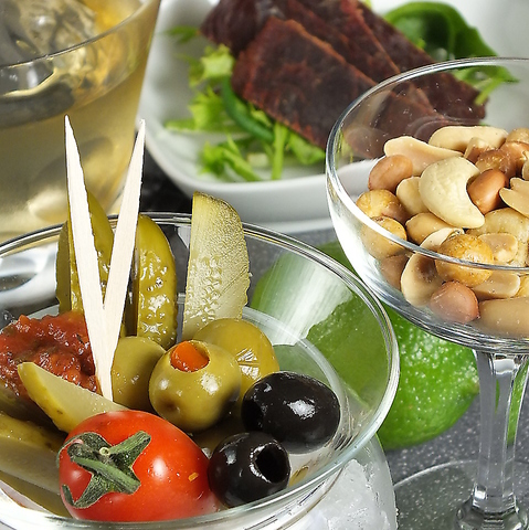 MIXナッツ(350円)、ピクルス(350円)やチーズ盛り(750円)などのお酒に合うおつまみを多数ご用意。他に、その日の仕入れ状況によって変わる本日のおつまみ3点盛り(600円)や本日のサラダ(500円)もオススメです。日替わりメニューはその都度マスターにお尋ねください♪