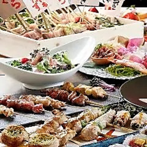 2時間飲み放題付コースで宴会を♪当店の名物が揃う定番コースです。ハーブチキンのオーブン焼きや刺身、野菜肉巻き串、じっくり焼き上げる焼鳥などボリュームも満点!同僚やご友人との宴会・飲み会に、楽しいひと時をお過ごしください。