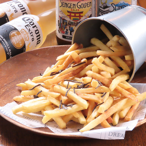 揚げたてのポテトにしょっぱい塩こんぶはお酒にもぴったり♪1kgでもご用意できます♪(1600円/税込)