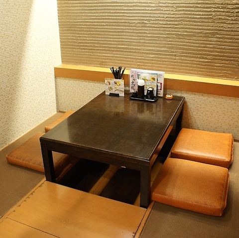 掘りごたつタイプで、足元楽々の個室です。落ち着いた雰囲気でお酒をお楽しみいただけます。