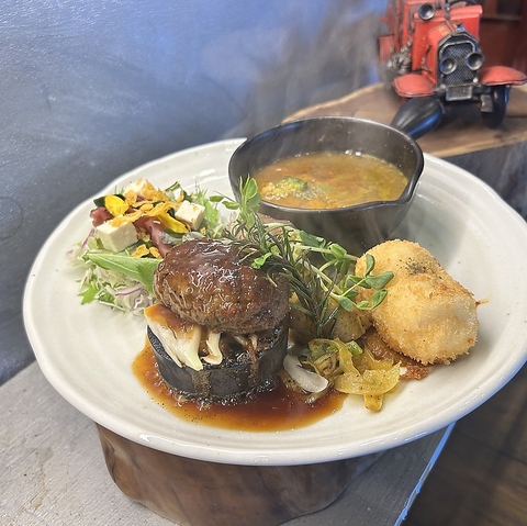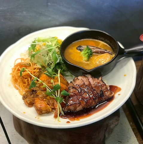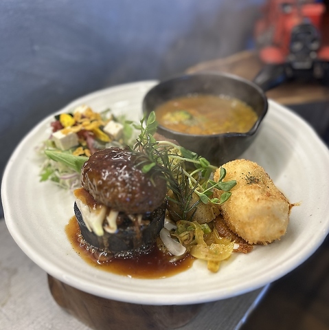 スープカリーも人気の和牛ハンバーグも両方楽しめるランチ