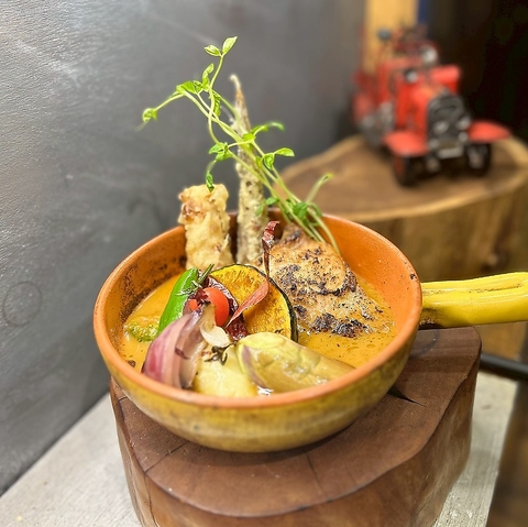 時間をかけてとった鶏白湯、和風出汁を絶妙なバランスで合わせたダブルスープはコラーゲンたっぷり♪オリジナルでブレンドしたスパイスには薬膳効果たっぷりで免疫力UPや新陳代謝UPなどさまざまな効果が期待できます☆一度食べたら癖になること間違いなし!!
