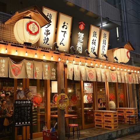 博多のうまかもんを食べ尽くす!名物鉄鍋餃子・濃厚もつ鍋・明太もつ鍋・出汁しみおでん・博多串焼き・とんこつラーメンなど、<本場の味×ボリューム×コスパ>の三拍子揃った、屋台気分で楽しめる博多名物が勢揃い♪