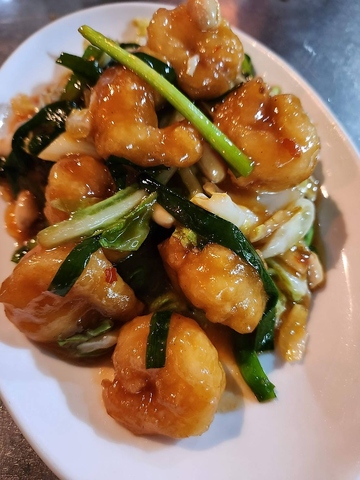 海老×ナッツの甘辛炒め!香ばしさと旨みが止まらない中華の逸品♪プリプリの海老と、香ばしいナッツを甘辛ダレで炒めた一品。ナッツのカリッとした食感と、海老の旨みが絶妙に絡み合い、中華ならではの奥深い味わいを楽しめます。お酒との相性も抜群!ぜひ一度ご賞味ください。