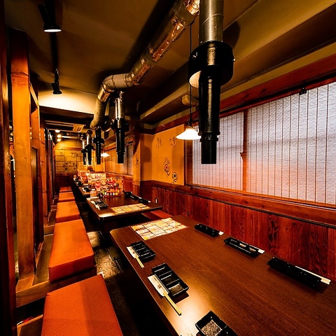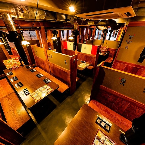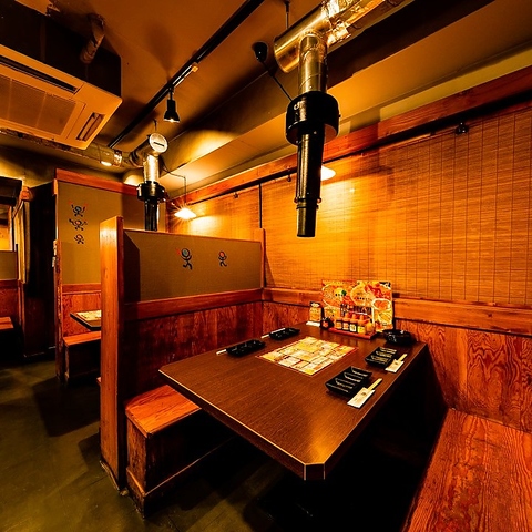 【デートや女子会に☆】余裕をもたせた席配置なので隣を気にせず、ゆっくりを食事をお楽しみ頂けます♪吸煙パイプで煙対策もバッチリ!!みんなで七輪を囲んで盛り上がろう♪♪いろいろ選べて注文楽々の食べ飲み放題もアリ★(写真系列店)