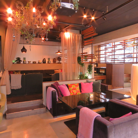 『ハスの花 』をイメージした、ガラス張りの開放感あふれるオリエンタルな癒し空間☆全席、ゆったりとしたソファ席で寛ぎの時間をお楽しみ下さい♪デート・女子会・お誕生日会などの普段使いから会社宴会、結婚式二次会同窓会やサークルやゼミの卒業イベントなどの貸切パーティまで!使い方は自由自在☆☆