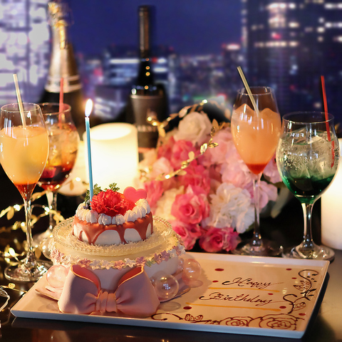 A5仙台牛ランプグリルやサーモンのミキュイなど肉料理も魚料理もお楽しみ頂けます。丁寧に作られたお料理は、大切な誕生日・記念日に華を添えます。大阪を一望できる夜景とともにシェフ特製の豪華なコースをご堪能ください♪コースの最後のデザートはメッセージを込めたホールケーキに変更可能です。(※前日までの要予約)