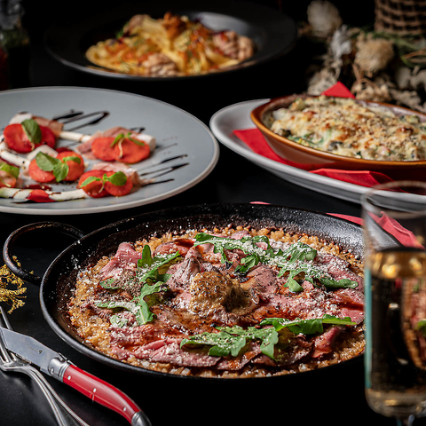 <2時間飲み放題付き5500円(税込)>US産プライム熟成牛“イチボ”ステーキ&ローマ風薄焼きピッツァ、魚介のパスタ“ペスカトーレ”を楽しむプレミアムプラン