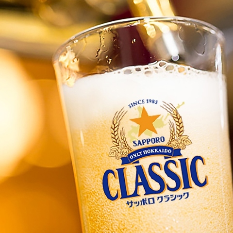 北海道の和食には、北海道で造られたお酒が一番合う。北海道各地の日本酒や北海道限定のサッポロクラシック樽生をご用意しております。炭焼き・煮物・揚物・寿司・刺身などお料理に合わせてお楽しみください。宴会コースでは『120分飲み放題』をお付けすることも可能です。札幌で宴会や飲み会をされる際はご利用ください。