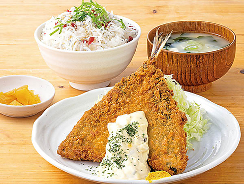 「牡蠣とアジフライ盛り合わせ定食(1200円)」「鮪と寒ぶりのブツ切り刺身定食(1200円)」「ぶりタレかつ丼と豚汁のセット(1100円)」「梅しらすご飯とジャンボアジフライ定食(1280円)」【一品料理】「春キャベツの豚平焼き(450円)」「山菜天布羅(580円)」など※価格はすべて税込です※写真はすべてイメージです。
