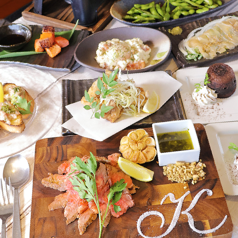KICHIRIのロングセラー「総料理長自慢の特製ローストビーフ」を本コース限定わさび醤油で上品に味わっていただけます!厳選食材の「胡麻ネギ塩で食べるはかた地どりの塩唐揚げ」や〆には「鮭ときのこのバター醤油釜飯」をご用意!接待などの各種宴会、デートや誕生日記念日などのお祝いにもおすすめです♪