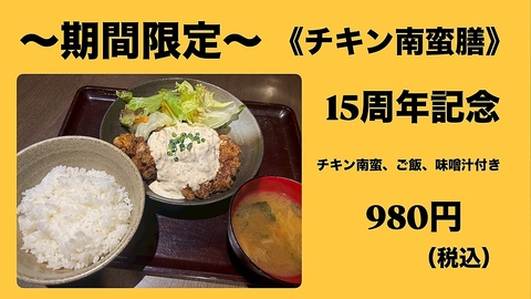 15周年記念!絶品!チキン南蛮定食980円!(税込)