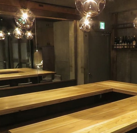 少人数でのお食事も。落ち着いた雰囲気のコの字型カウンター。