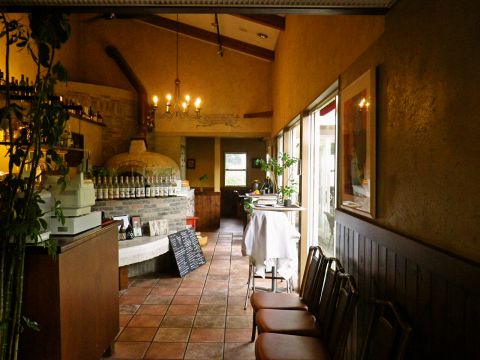 解放感のある外も見える店内のお席もテラス席もご用意。焼き立てピザの香りが広がる石窯も店内にあり。