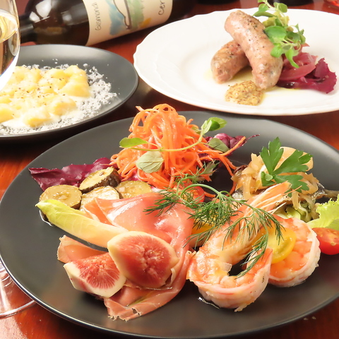大皿でお出しするタイプの本格的イタリア料理8品と約50種類のドリンク飲み放題が1時間半も楽しめる★