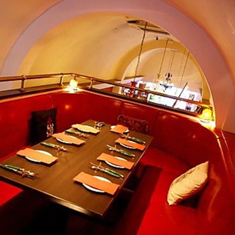 店内奥の階段を上ると、ドーム型の個室がございます。店内空中から見下ろせる形になっており、賑やかな店内の活気を感じながらも他のお客様からの視線は遮断された完全プライベート空間をお愉しみください。