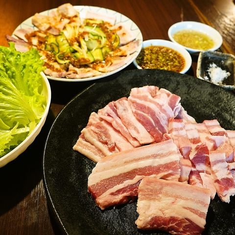 サムギョプサル・雲白肉(ウンパイロウ)は特製の三杯酢と相性抜群♪サンチュに巻いてヘルシーにお召し上がり頂くのもオススメです!