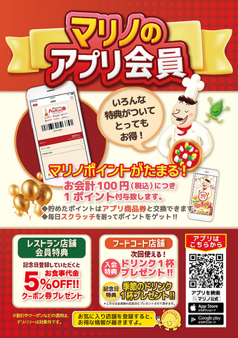 メニューの詳細は公式HPをご確認ください♪【マリノ〇〇店】で検索!