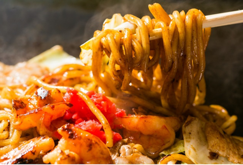モチモチとしたの太麺に自家製ソースがガツンと効いたボリューム満点の美味しさです。キャベツやもやしのシャキシャキとした食感も美味しい秘密。