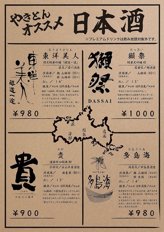 | お酒 | カクテル充実、焼酎充実、日本酒充実 |