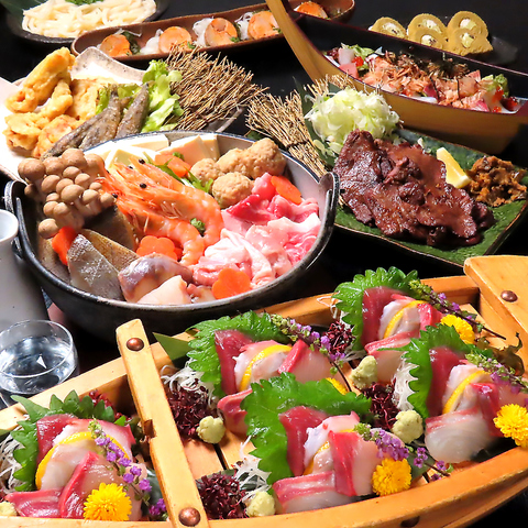 宮城の厳選料理を各種お楽しみ頂けます!市場直送特選鮮魚や、牛たん炭火焼等宮城らしい旬のお料理をお楽しみ頂けます!!少し贅沢なお食事会や会社接待にもおすすめのコースにした仕立ててございます!