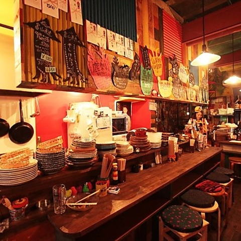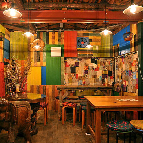 カラフルな壁や天井には様々なPOPや小道具が飾り付けられ、お食事の場を盛り上げます!木造一軒家の店内は明るさと落ち着きがあり、ゆっくりとお過ごしいただけます♪