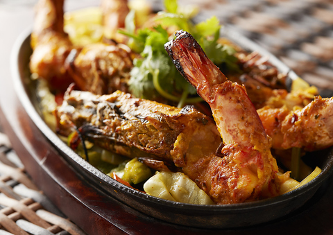 数十種のスパイスをブレンドし、自家製ヨーグルトソースに漬け込んだインド式バーベキューは、熟練のタンドールシェフが炭火で丁寧に焼き上げる当店自慢の一品。スパイシーな味わいでお酒も進みます。インド国内シェアNo.1のインドワインと一緒にお楽しみください。