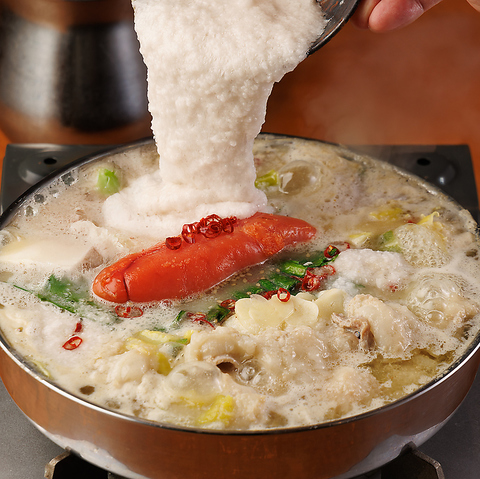 定番のもつ鍋をはじめ、スパイシーカレー鍋や博多明太とろろもつ鍋など、季節限定の創作鍋までご用意しています。みんなで囲めば会話も弾む、博多満月の名物鍋をご堪能ください。 ※2人前からのオーダーです。