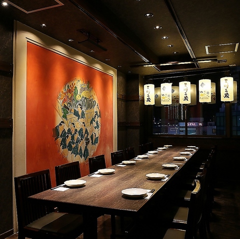 最大40名様用テーブル個室。ワイワイ楽しい雰囲気でお過ごし頂けること間違い無し!大人数様での宴会、飲み会などの各種宴会に最適です!仙台で居酒屋、海鮮、牛タンのお店をお探しでしたら三枡三蔵 仙台駅前店をご利用下さいませ!【仙台/居酒屋/接待/宴会】